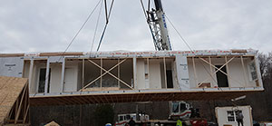 This modular home is typical of the type of modular construction that Belt Built performs. Modular homes are sectional prefabricated houses, that consist of multiple sections called modules. The module sections are constructed at an off-site facility, then delivered to the intended site of use where the construction of the prefabricated sections is completed on site as they are joined together to make a single building. Theses modular homes are built to the same or higher building standards as on-site stick-built homes, conforming to all local building codes for their proposed use.